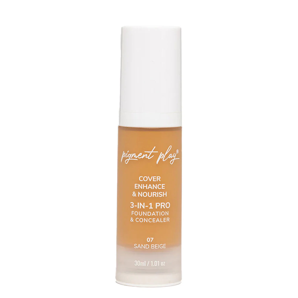 Pigment Play 3-In-1 Foundation & Concealer: Cover + Enhance + Nourish - 07 Sand Beige 4pc Set + 1 Full Size Product Worth 25% Value Free